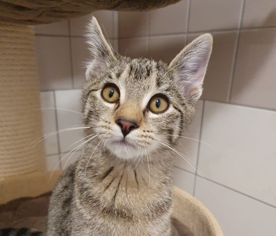 Assy ist ein lustiger kleiner Kater mit einem ernsthaften Gesichtsausdruck. Er sitzt zusammen mit zwei weiteren kleinen Katern im Katzenhaus und kommt mit beiden prima zurecht.