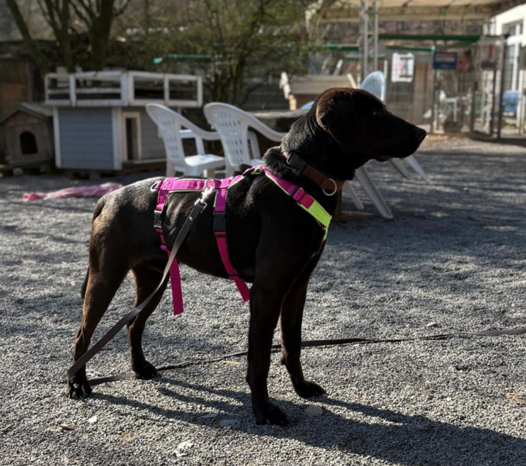 Abid hat eine Schulterhöhe von etwa 57 cm. Für ihn heißt es nun erst einmal, in Ruhe anzukommen. Sobald wir ihn besser kennengelernt haben, folgt eine genauere Beschreibung.