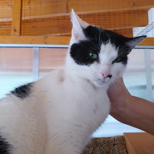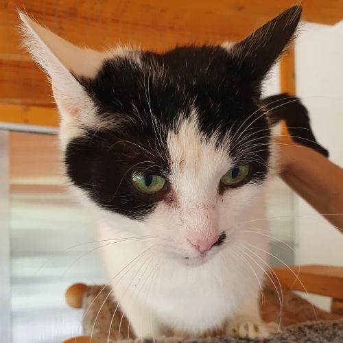 Flocke ist 5 Jahre alt und ein richtiger Schatz. Sie ist nett zu Menschen und mag auch andere Katzen sehr gerne. Ständig sucht sie Kontakt, was die anderen Katzen im Katzenhaus etwas zur Verzweiflung bringt und uns Menschen läuft sie dauernd vor den Füßen rum - auch nicht zielführend, wenn man gerade was zu tun hat.