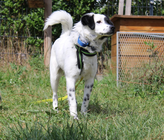 7 Monate jung ist direkt nach seiner Ankunft auf eine Pflegestelle mit größeren Kindern und 3 weiteren Hunden gezogen. Was soll ich sagen, alle Menschen und alle Hunde sind bezaubert von dem kleinen, selbstbewussten und fröhlichen Junghund. Und das gerade mal nach 1,5 Tagen. Er fügt sich rasch in den Rahmen vor Ort, liebt es im Garten zu toben mit den "Großen" und ist auch schon stubenrein, wenn man ein wenig ein Auge auf ihn hat.