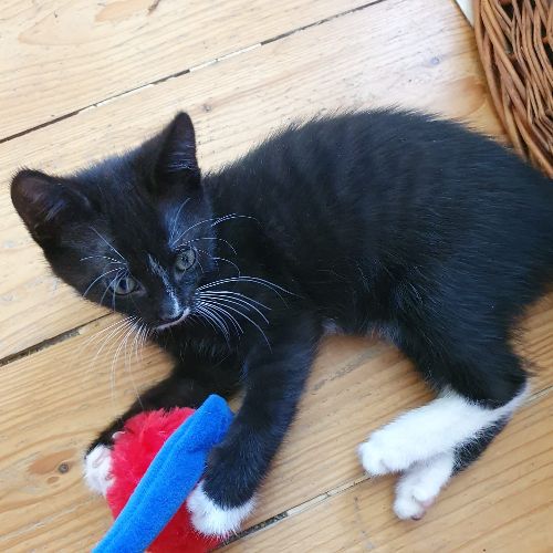 Pippa kam mit ihrer Schwester Polly und ihrer Mutter Patchy zu TiNO und dann direkt in eine Pflegestelle. Zu dünn und mit Verdauungsproblemen und leicht traumatisiert. Jetzt ist aber wieder alles gut.