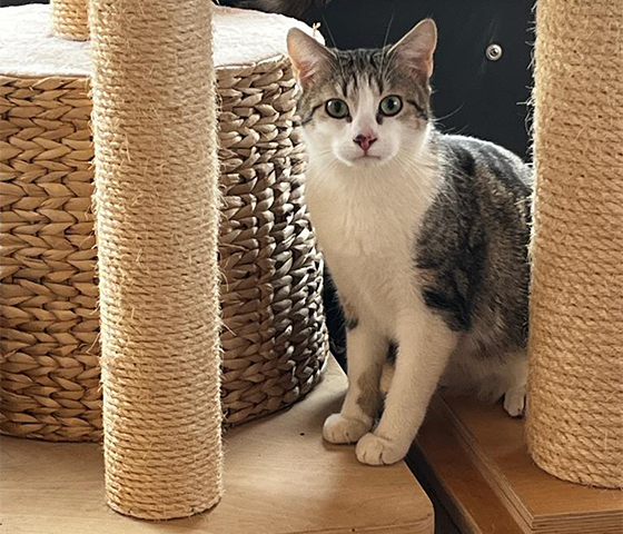 Spot war zunächst ein kleines, dünnes Ding mit einem Punkt auf der Nase, deshalb: Spot! Er ist sehr schnell gewachsen und ein langbeiniger, muskulöser und ernsthafter Teenagerkater geworden. Spot lässt sich nicht so leicht in ein Spiel ziehen, er betrachtet Toberei meist etwas hochnäsig mit Abstand. Spot wird mal ein seriöser Freund fürs Leben.